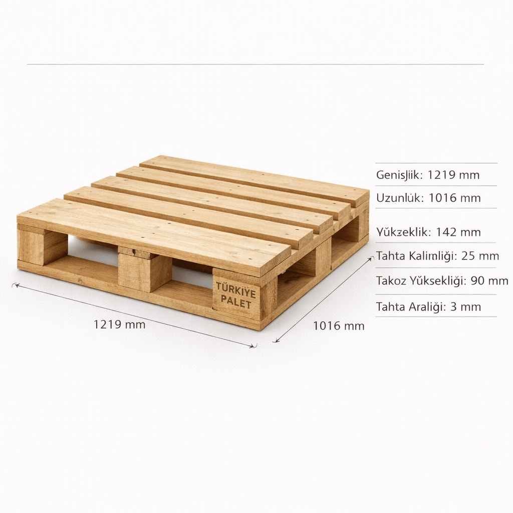 Standart palet ölçülerinin yanı sıra müşterilerimizin ihtiyaçlarına göre özel ölçülerde palet üretimi de yapıyoruz.